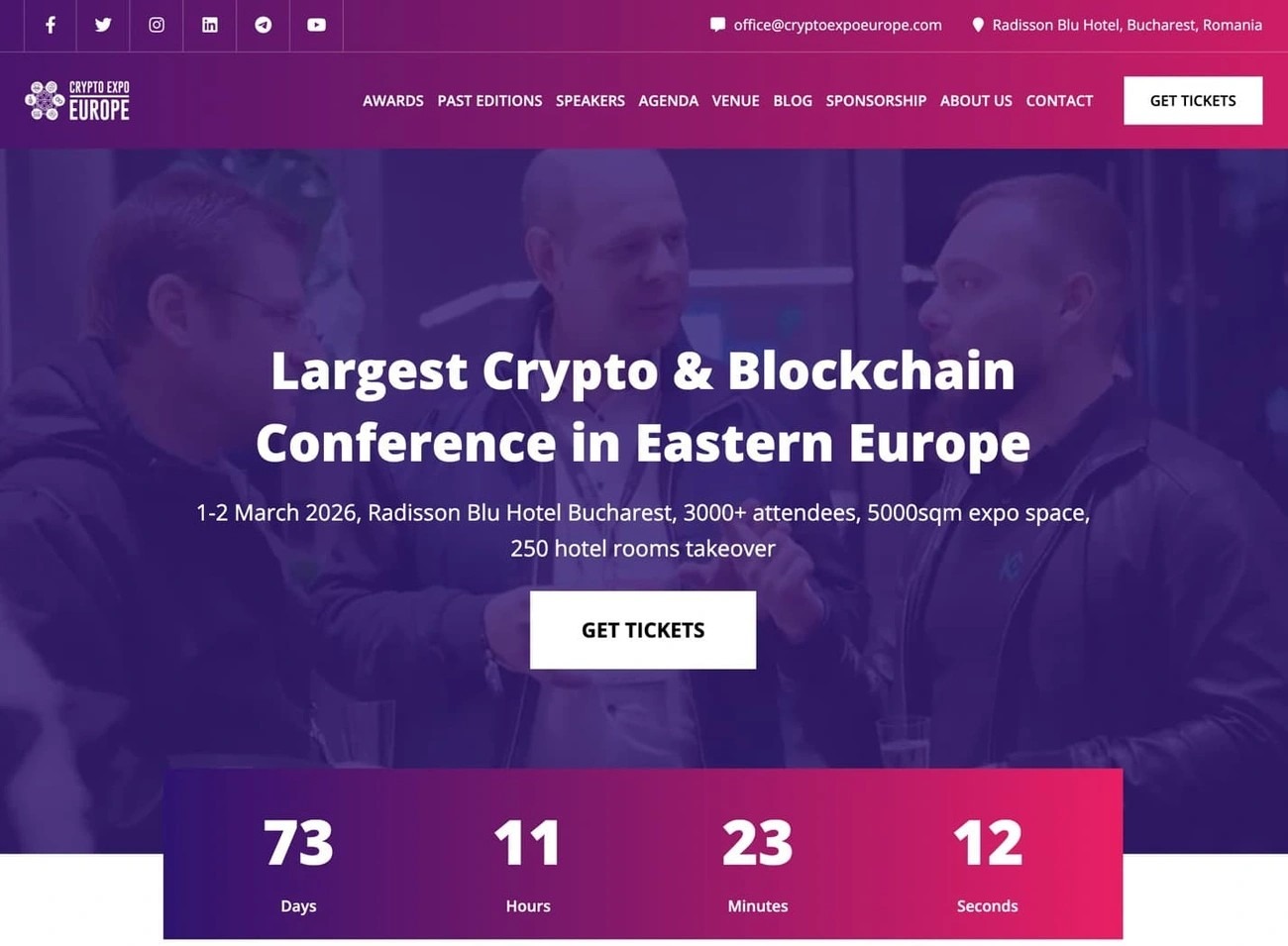 | Blockchain Expo North America | Not mentioned | Santa Clara Convention Center | 6,000+ | Blockchain ecosystem | Free – $400 | 250+ exhibitors, networking party |